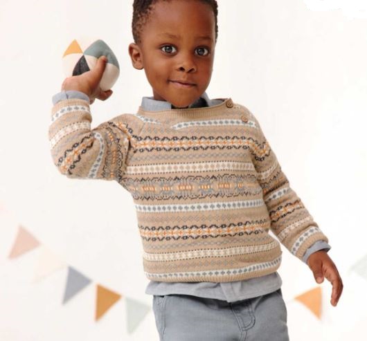 Ein detailreiches Jacquardmuster im Norweger Style macht diesen Strickpullover zum winterlichen Highlight. Raglanärmel sorgen für bequeme Passform und Kokosknöpfe am Ausschnitt erleichtern das Anziehen. Warm und stilvoll für kalte Tage.