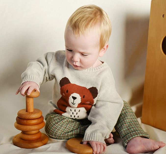 Dieses Strickset mit seinem originellen Bärendesign ist eine bequeme Bekleidung für die Kleinen. Das Set besteht aus einem langärmligen Oberteil und einer passenden Hose und ist perfekt für den Alltag.