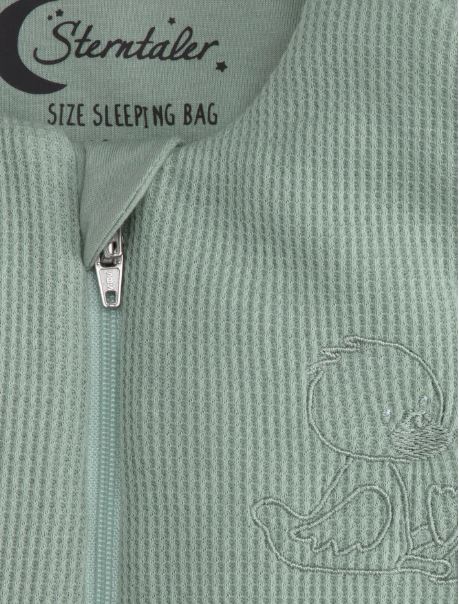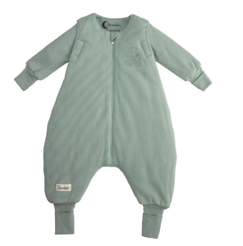 Der weiche Schlafsack mit Beinen in steingrün eignet sich ideal für gemütliche Kuschelstunden oder verdiente Ruhepausen von aktiven Abenteurern. Bündchen an Hand- und Fußgelenken verhindern ein Verrutschen und Auskühlen von Armen und Beinen, ohne dabei Druckstellen zu verursachen. Außerdem können die Ärmel durch praktischen Klettverschluss einfach und schnell abgetrennt werden. Die Reißverschlussführung mit 2-Wege-System erleichtert das Wickeln.