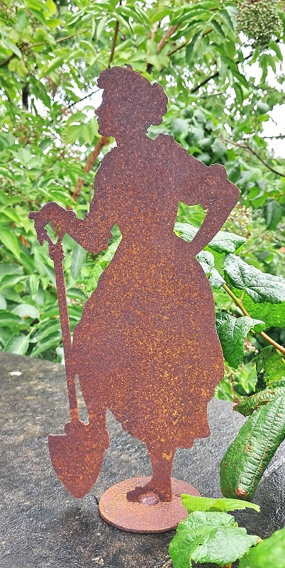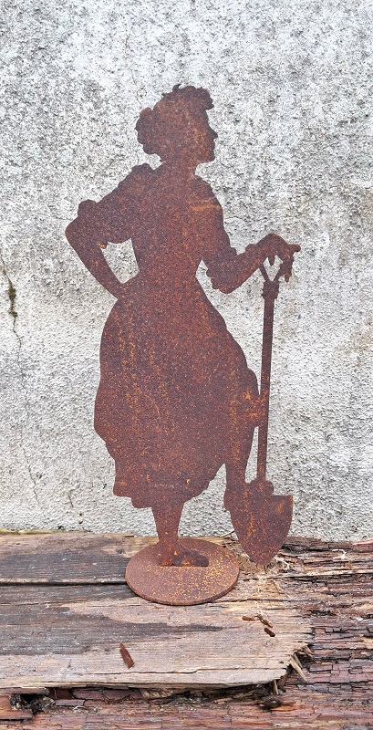 Eine hübsche Gärtnerin in Rostoptik. Ideal geeignet für den Outdoor-Einsatz, da er frostsicher ist. Durch Witterungseinflüsse verändern sich Farbe und Optik, wodurch dieses Objekt sich zu einem Unikat entwickelt.