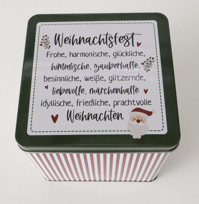 große grüne Dose "Weihnachtsfest" : Höhe ca. 15cm - Breite / Tiefe je ca. 15cm