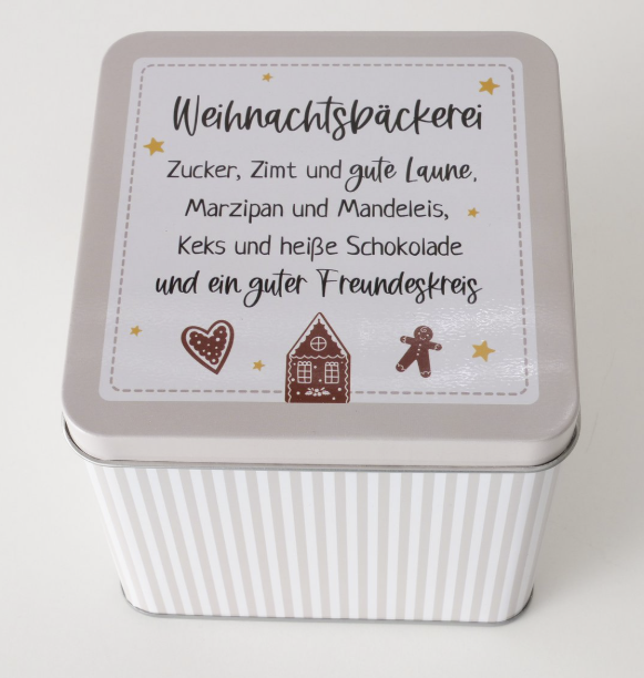 mittlere beige Dose "Weihnachtsbäckerei" : Höhe ca. 12cm - Breite / Tiefe je ca. 12cm