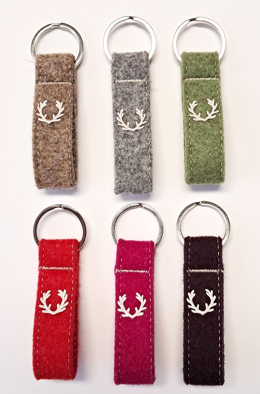 Hochwertige handgearbeitete Filz-Schlüsselanhänger mit aufdedrucktem Hirschgeweih.