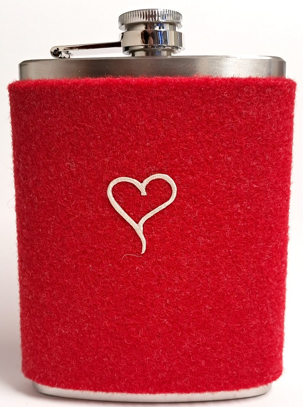 Hochwertige Trinkflasche aus Edelstahl mit Filzbezug. Schlicht und elegant durch aufgedrucktes Herz.