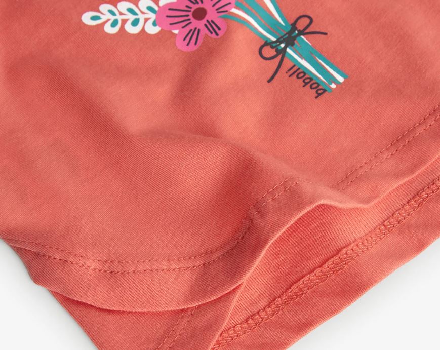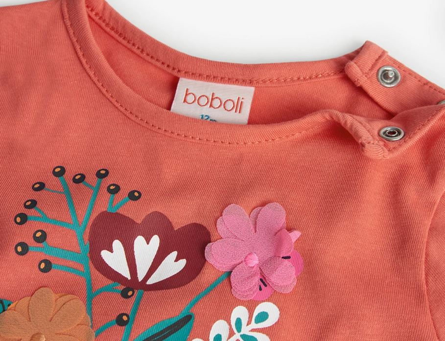 Ein weiches Baumwollshirt mit Blumendruck incl. Applikationen. Zwei kleine Druckknöpfe oben an der Schulter ermöglichen ein bequemes Anziehen dieses Shirts.
