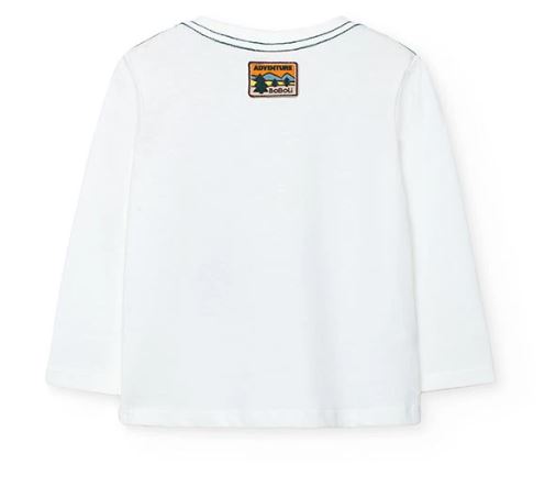 Jungen-Shirt aus Strick in Weiß, entworfen, um Komfort zu jeder Jahreszeit zu bieten. Hergestellt aus weichen und hochwertigen Materialien, gewährleistet das Kleidungsstück Bewegungsfreiheit und Wohlbefinden.