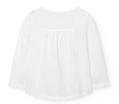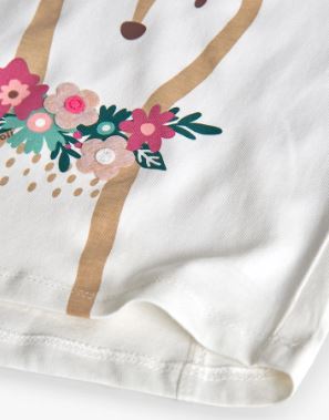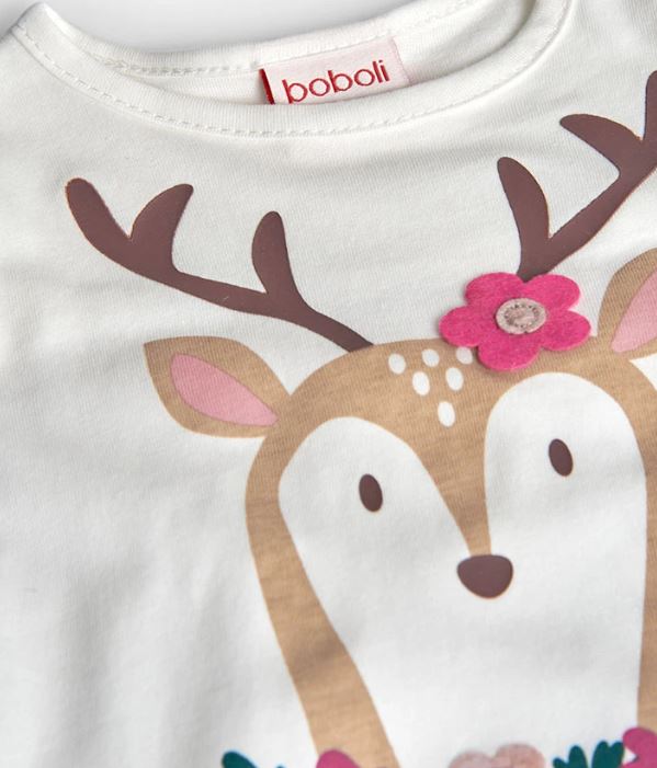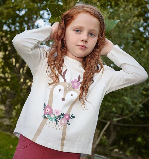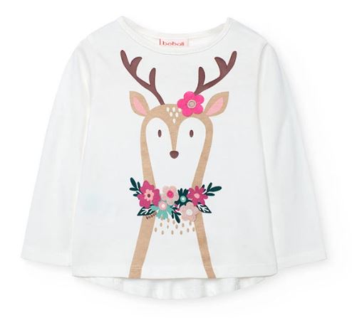Langarmshirt für Mädchen mit einem bezaubernden Hirschdesign auf der Vorderseite, verziert mit floralen Details in sanften Rosa- und Grüntönen. Aus weichem Strickstoff gefertigt, perfekt um Wärme und Komfort während Herbst und Winter zu gewährleisten. Die weiße Farbe macht es zu einem vielseitigen Kleidungsstück, das sich leicht mit jedem Outfit kombinieren lässt. Der klassische Rundhalsausschnitt sorgt für eine bequeme Passform.