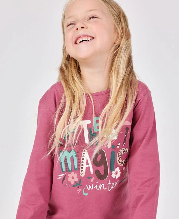 Erdbeerfarbenes Baumwoll-Langarmshirt für Mädchen, ideal für Herbst und Winter. Seine lebendige... mehr