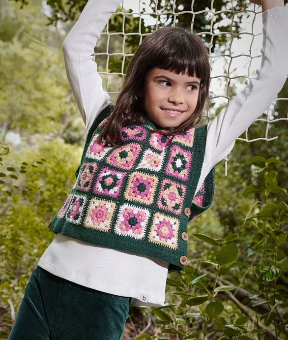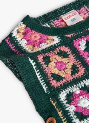 Strickweste für Mädchen mit Karomuster in Grüntönen, ideal für die Herbst- und Wintersaison. Gefertigt aus einem warmen und weichen Stoff, der Komfort und Wohlbefinden für Ihr Kind gewährleistet, während er einen charmanten und gemütlichen Touch verleiht. Verfügt über praktische seitliche Knöpfe zur einfachen Anpassung. Perfekt zu kombinieren mit Hosen oder Röcken, dieses vielseitige Kleidungsstück ergänzt einen lässigen und bequemen Alltagslook.