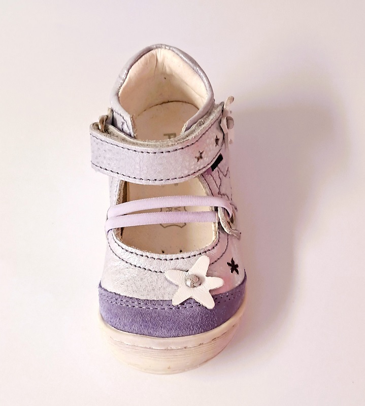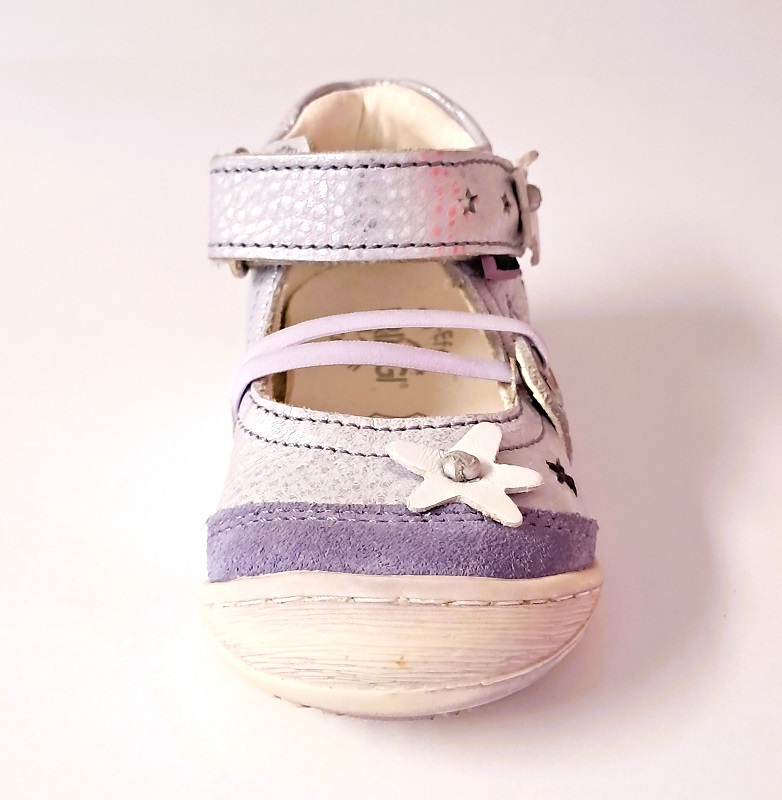 Ein eleganter zarter Ballerina mit schöner Applikation. Er wird oben über einen Klettverschluss geöffnet.
