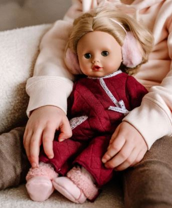 DIe Götz-Muffin-Puppen haben einen weichen Stoffkörper, gefüllt mit flauschiger Watte und Granulat. Ihre Arme und Beine sind aus hochwertigem Vinyl gefertigt. Die Kleidung lässt sich mühelos an- und ausziehen, sodass auch kleine Kinderhände spielerisch damit umgehen können. Beim Spielen werden nicht nur Fantasie und soziale Fähigkeiten gefördert, sondern auch die sensorische Entwicklung gestärkt. Die Puppe ist waschmaschinen- und trocknergeeignet und somit leicht zu reinigen – perfekt für den täglichen Spielspaß.