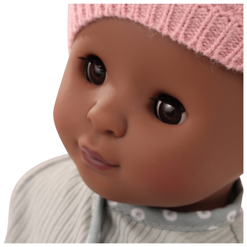 Geduldig und schick gekleidet wartet die Puppe nur noch darauf, dass ihre Puppenmama oder ihr Puppenpapa auch bald fertig ist, um mit ihr in die Eisdiele zu gehen. Die Maxy Muffin hat sich heute in einen überaus schicken Overall in Pastell gekleidet mit witzigen Stoffschuhen, die einfach bequem und cool sind. Was bei keinem Ausflug fehlen darf ist ihre Ballonmütze in rosa Strick. Sie hat einfach Geschmack!